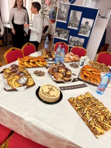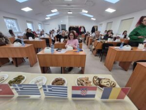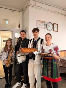 Erasmus+ projekt “Let’s Eat Sweet & Let’s Talk Sweet” (2024-2-TR01-KA210-VET000267135) donio nam je još jedno nezaboravno iskustvo puno slatkih okusa, kulturne razmjene i zajedničkog učenja. Od 25. do 28. studenoga 2025. profesorice Mirjana Šams, Zlatka Benček i Ida Globočnik boravile su u gradiću Fălticeni u Rumunjskoj, gdje ih je partnerska škola dočekala s iznimnom toplinom, kreativnošću i bogatom ponudom originalnih slastica, specifičnih za regiju Bukovinu. Na ulazu u školu dočekali su nas učenici u tradicionalnim nošnjama, uz glazbenu pratnju, poslužujući ispletenu tortu od koje se, prema tradiciji, otkine komadić i umoči u sol prije ulaska u unutarnji prostor.