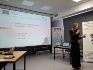 - Modul 1: Klimatske promjene i održivost – obrađene su osnove znanosti o klimi i održive prakse u obrazovanju.